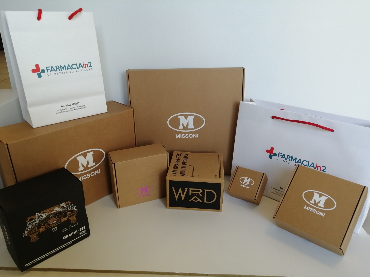 Per packaging di dimensioni standard si possono usare fustelle esistenti puntando a personalizzazioni grafiche e all’utilizzo di carte particolari; oppure, per packaging mirati e creati ad hoc, si realizzano tracciati fustella su misura.